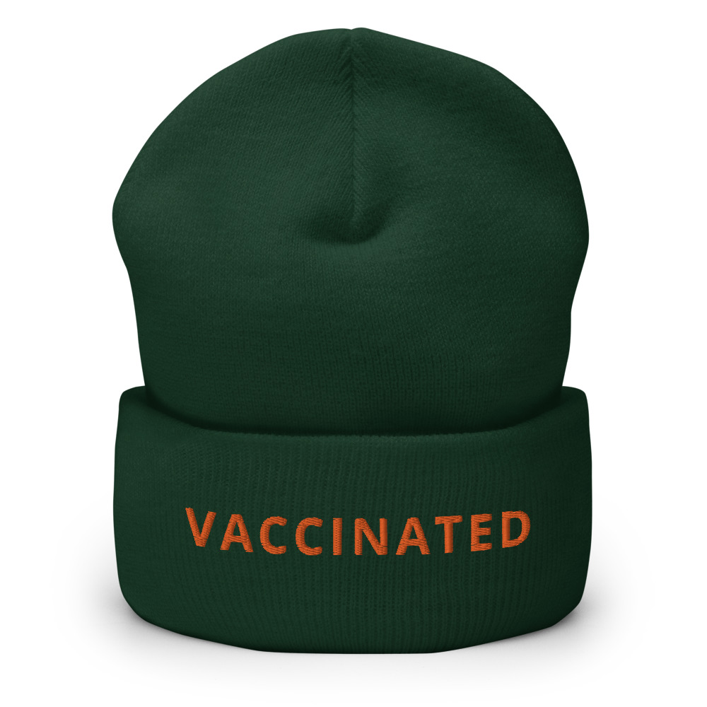 Cuffed Beanie “VACCINATED” Orange Lettering